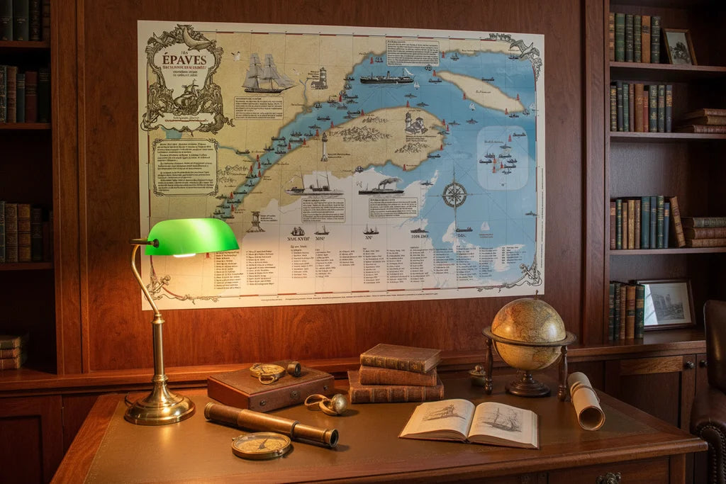 Et pourquoi pas, choisissez un bel encadrement pour mettre la carte des épaves en valeur!